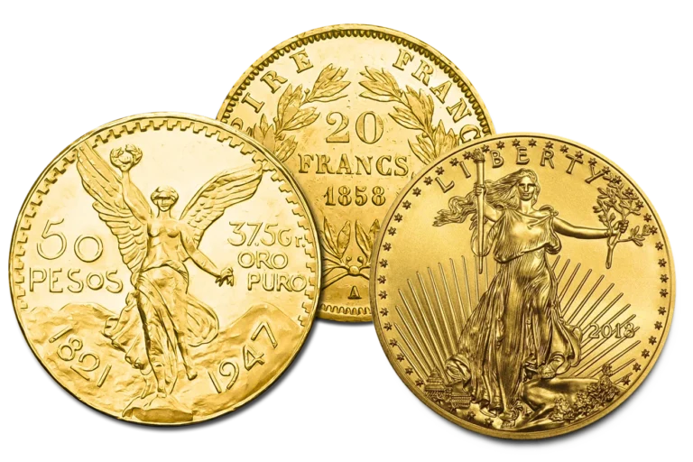 - Pièces de bourse : Napoléons, 20 Francs, Souverains, Krugerrand…